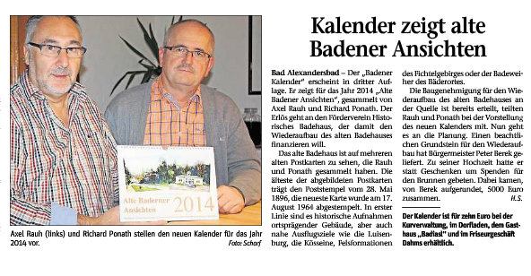 Hier finden Sie Presseberichte über den Wiederaufbau des historischen Badehauses sowie die Arbeit des Fördervereins Historisches Badehaus e.V. Bad Alexandersbad